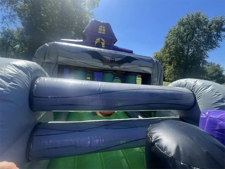 Navigate through the Graveyard Gauntlet’s various challenges, including the Pumpkin Pathway, Ghostly Gauntlet, and Spooky Slide. Each section is designed to test your agility, speed, and courage as you dodge, climb, and slide your way to the finish line. The vibrant colors and detailed Halloween-themed decorations make this inflatable a standout feature for any party, carnival, or festival.