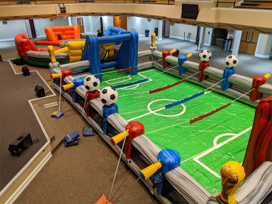 Human Foosball is a thrilling and exciting team game that is perfect for parties, events, and team-building activities. This game is inspired by the classic table-top game of foosball, but instead of controlling the players with rods, the players are the rods themselves! In Human Foosball, players are attached to a horizontal pole and must work together to move the ball around the field and score goals. The game requires teamwork, coordination, and communication, making it an excellent way to build camaraderie and improve team dynamics.