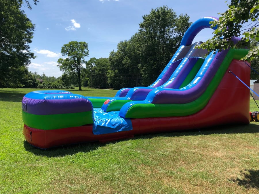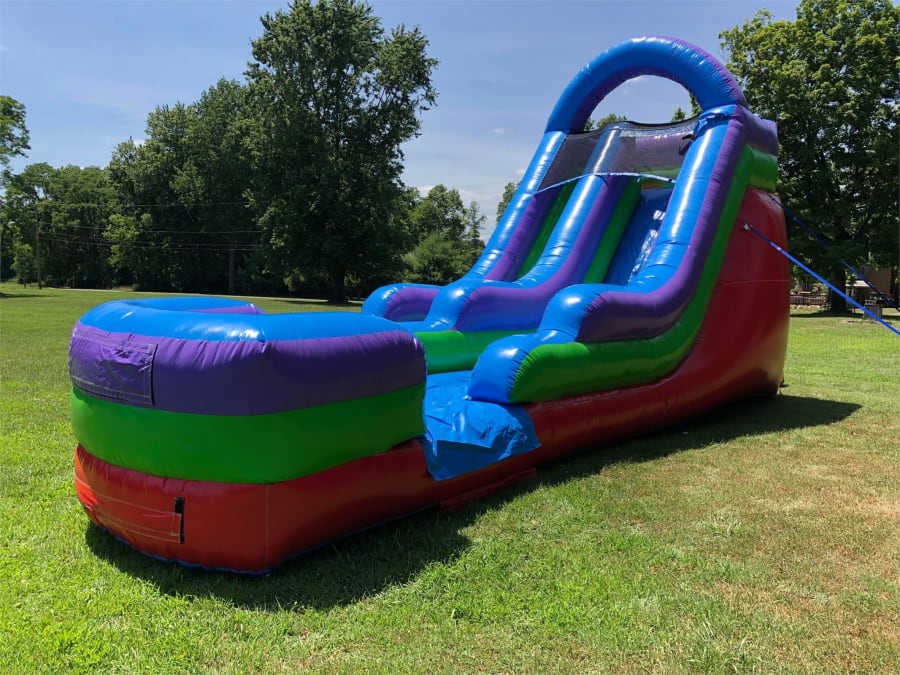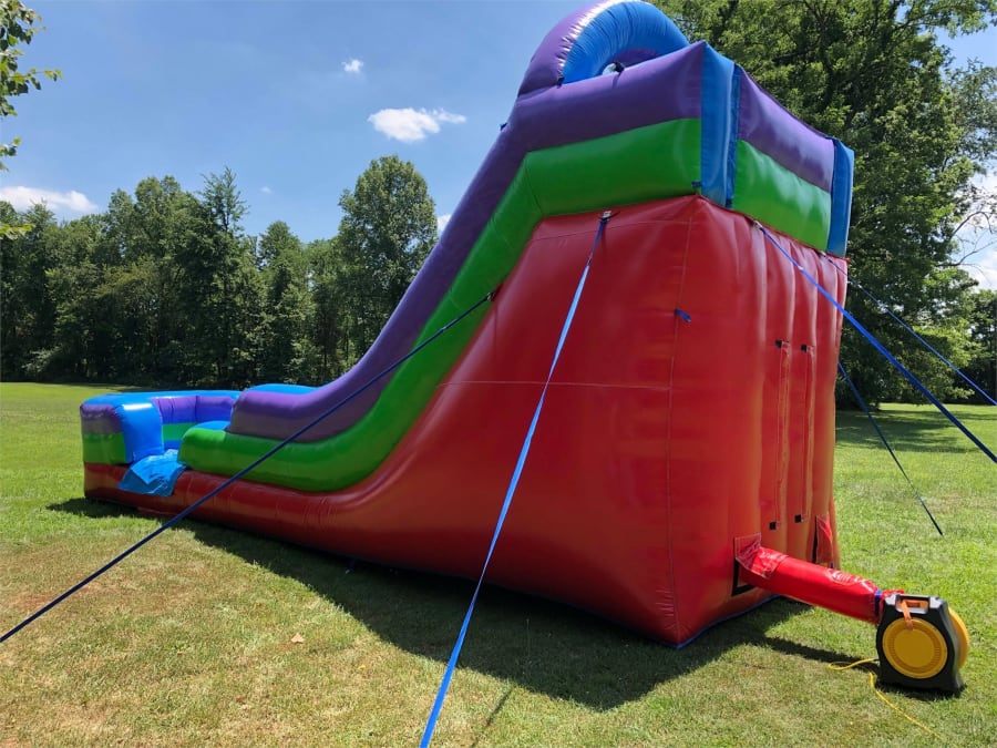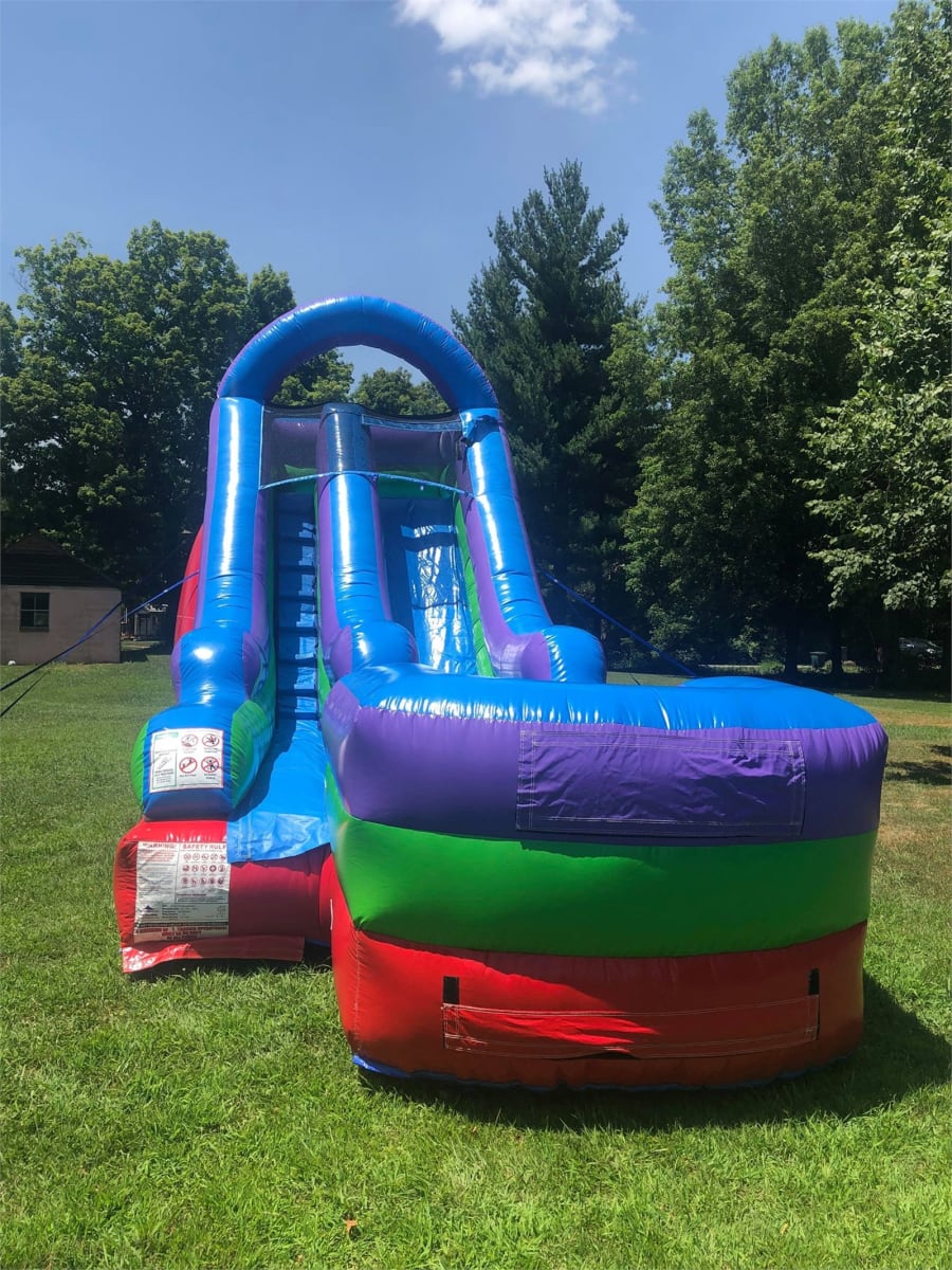 The 15' Single Lane Retro Color Dry slide is one of our most in demand slides. All of our slides have an inflated landing zone for safe use. The climbing area, top launch platform and the entrance feature a non-slip grip material for a safer experience and peace of mind. Please note, if you prefer this as a water slide, you will have to order it as such on our inflatable slides page. This enables us to allow for extra time when picking up since it takes a lot longer to pack up a slide after it has been used with water.