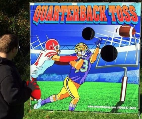 Quarterback Toss is a winner at any sporting event, fund raiser, or carnival. It's a very simple game but irresistible! No football player or football player want-to-be can walk by this game without giving it a shot. This compact, low maintenance, low cost product will really boost your profit potential. Like all of our games, Quarterback Toss can be set up in less than five minutes and can be used indoors or out.