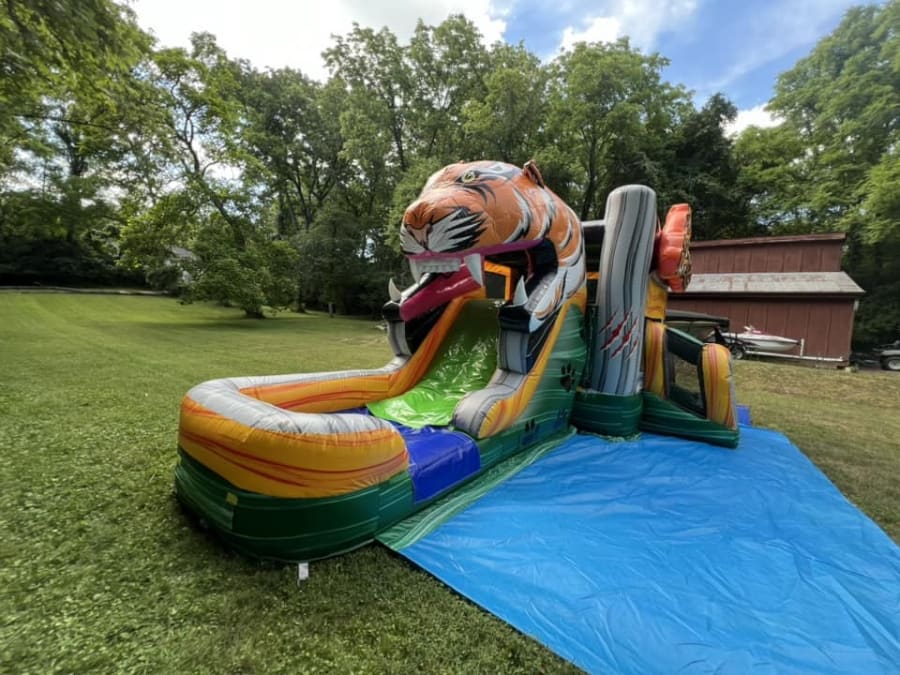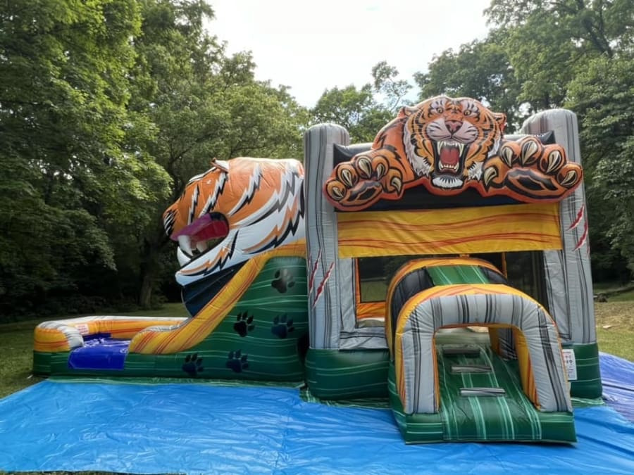 • Exciting Slide: The attached slide, which can be used wet or dry, adds another layer of adventure. The slide exits through the tiger's mouth, ensuring every ride is an exhilarating experience.