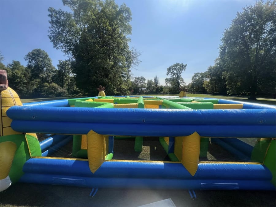 Standing tall with its iconic corn character pillars, the maze offers a challenging yet fun experience as participants navigate their way through the various twists and turns. The inflatable walls are high enough to create a sense of mystery and excitement but low enough to allow parents and supervisors to keep an eye on the participants.