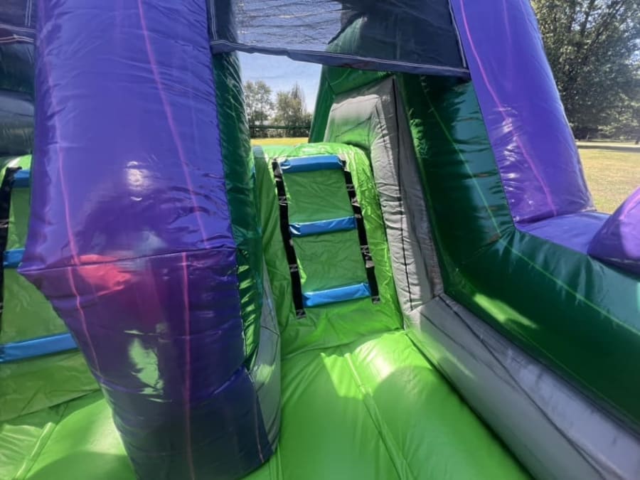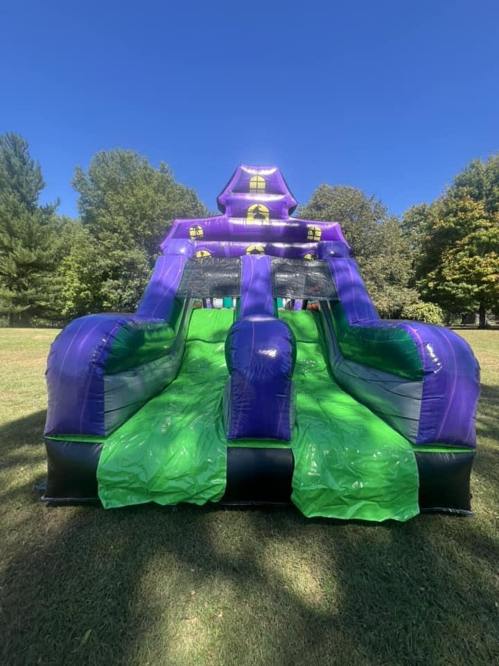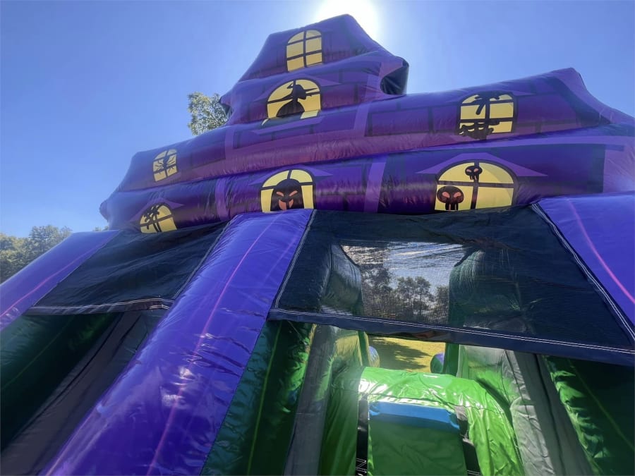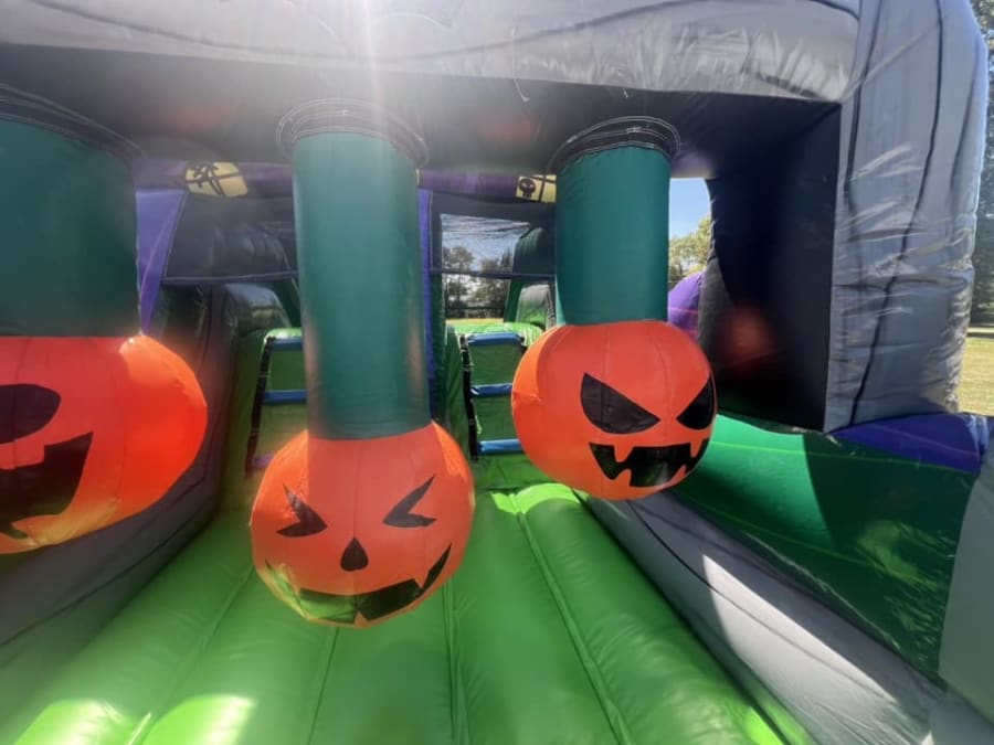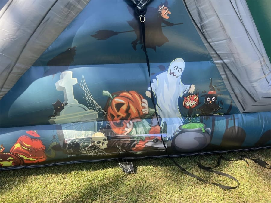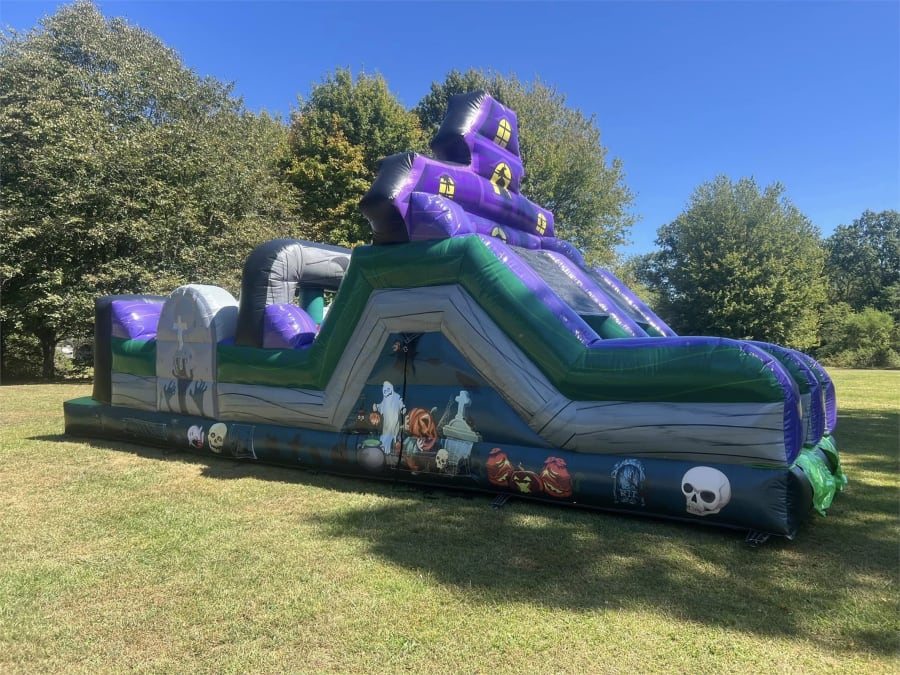Navigate through the Graveyard Gauntlet’s various challenges, including the Pumpkin Pathway, Ghostly Gauntlet, and Spooky Slide. Each section is designed to test your agility, speed, and courage as you dodge, climb, and slide your way to the finish line. The vibrant colors and detailed Halloween-themed decorations make this inflatable a standout feature for any party, carnival, or festival.